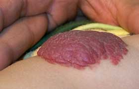典型案例 男嬰城城在出生一個月后,細心的父母就發(fā)現(xiàn)他的左上臂有一黃豆大小的紅色痣,到診治時被告之是一個小血管瘤,醫(yī)生告訴他們應細心觀察這個血管瘤的生長情況...[詳細]