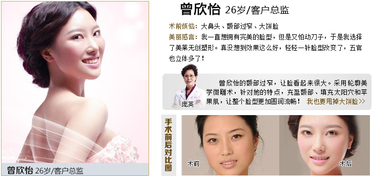 我一直覺得自己臉型很怪,但又說不上來,后來給一個做美容的朋友點破,原來是我太陽穴太凹陷了,顯得額頭窄,臉型就不太好。所以就到這邊來做了墊太陽穴,是用注射填充的,感覺還不錯。做手術(shù)的是龐英醫(yī)生,她很專業(yè)。