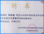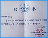 2010年中華醫(yī)學(xué)會第七次全國醫(yī)學(xué)美學(xué)與美容學(xué)術(shù)年會上做報告獲榮譽證書