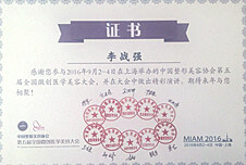 2016年中國整形美容協(xié)會第五屆全國微創(chuàng)醫(yī)學(xué)美容大會發(fā)表精彩演講獲證書