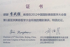 2012年中國美容醫(yī)學(xué)大會暨第1屆亞洲美容醫(yī)學(xué)上精彩演講并獲證書