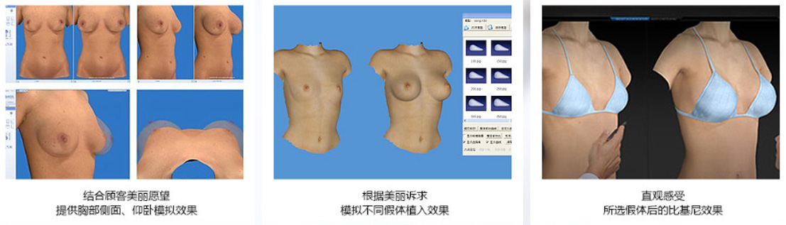 強(qiáng)勢(shì)引進(jìn)美國(guó)3D VECTRA影像分析系統(tǒng),結(jié)合顧客美麗愿望提供胸部側(cè)面、仰臥模擬效果,根據(jù)美麗訴求模擬不同假體植入效果,直觀所選假體后的比基尼效果。