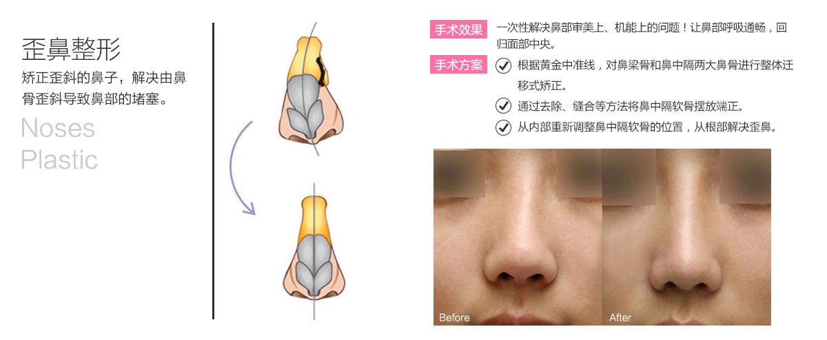 在美鼻的同時(shí),充分考慮面部五官的整體協(xié)調(diào)美,修正鼻部與面部五官比例,不再是傳統(tǒng)鼻整形鼻子高度的加減,而是配合五官特性,改變鼻框架結(jié)構(gòu),實(shí)現(xiàn)高度、長(zhǎng)度、寬度、弧度、視度均衡,完善面部立體感。