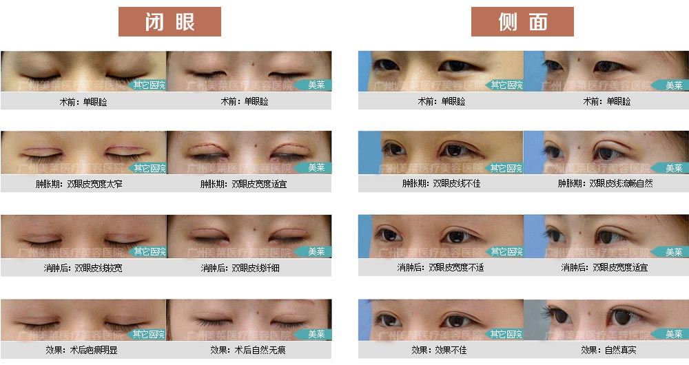 角膜露出率為50%至80%,上瞼覆蓋角膜2毫米,重瞼線高約5至8毫米,也可上瞼裂至眉下緣1/3為宜。